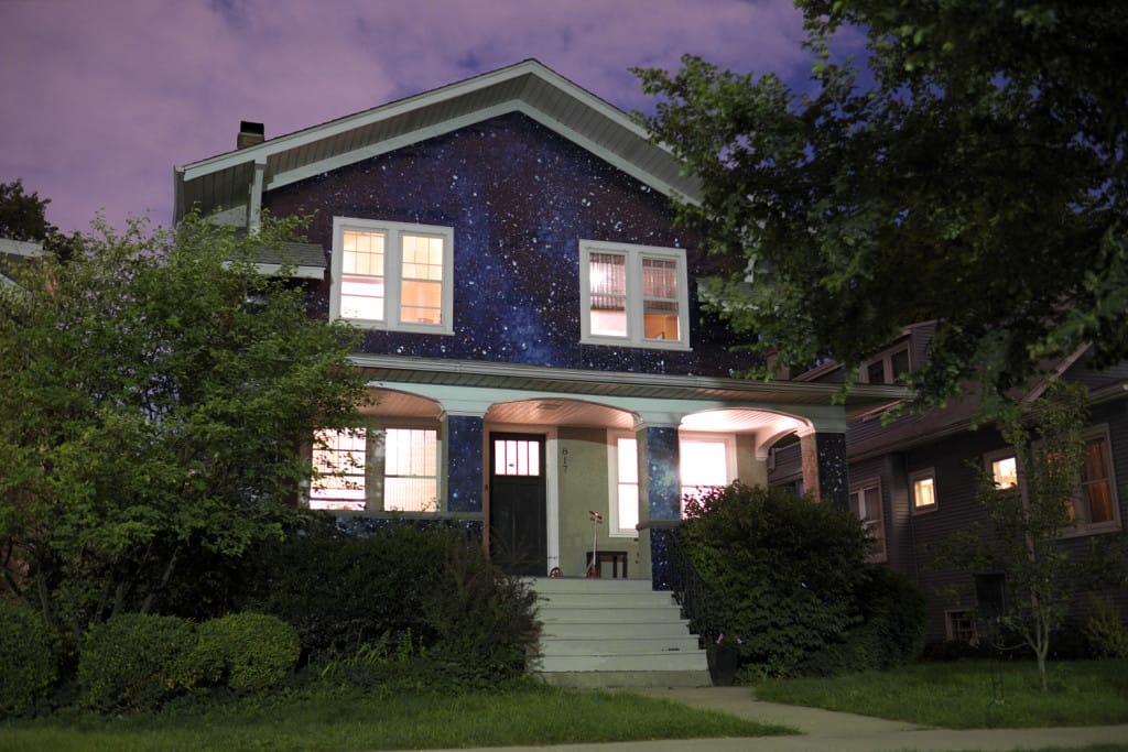 I started to recall other similar gestures. I remembered that the children’s author, illustrator, and former architect, Deborah Freedman, lives in a house that is an exuberant palette of abstract colors and shapes. I thought of a recent social media post I saw in which someone had painted the outside of their house black and then covered it in starry constellations. Sadly, I couldn't find that particular post again. But searching led me to the amazing “Night House”, which was part of a public art installation by artist, Kate McQuillen, and is covered in constellations that blend into the night sky. I thought of the outlandish Christmas light displays that are a staple of December life in Dyker Heights Brooklyn, or the various Halloween dog costume parades that will take place soon around the city—proof that you don’t need to own your own home to be publicly whimsical.