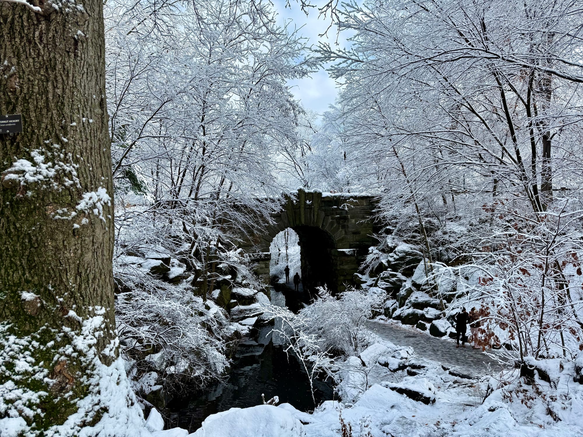 Today’s snow was the first of the season in New York and on a Sunday, no less. So the hills of Central Park were filled with snow-suited children, and there was a giddiness even to the adults, not yet weary of winter. I passed by a man who, as I walked by, was exclaiming to someone on the phone, “The kiddos are all out sledding and there’s cute dogs playing everywhere!” Two teenage girls had brought a giant bin and were in the midst of building an impressive snow fort. And, when I passed by Belvedere Castle, the wind kicked up creating a fresh dusting, while music drifted through the air along with the snow, carried from somewhere else in the park. There are occasionally days in New York that actually do feel like the movie version of the city and this was one.